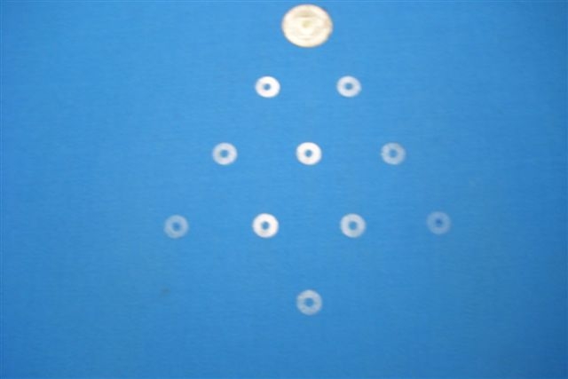 I think this is an advantage over the tapping template. I have always thought that if you locate all the balls and tap the table for all the locations all at once that you would have a problem. Ideally, the balls would sit on the edge of a small dimple in the cloth. That way they would "roll" towards each other. If you tap them all at the same time, then it would be impossible to make the dimples a little closer together than the centers of the balls. You could use a smaller set of balls to tap with, but that's the only way I see to get the balls to "Lean" against each other with tapping the table all at once. If you tapped the holes separately, one at a time, you could do it but you wouldn't want the template to move at all while you where doing it.