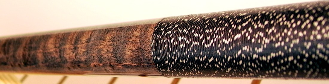 I am sure it is not stained BEM like the forearm. I believe it is cocobolo, but it is dark so it could be ebony. It is a great playing cue, imho it is much like a schon. Has a good heft to it. Thanks for the comments about the price- I too feel it is a deal.