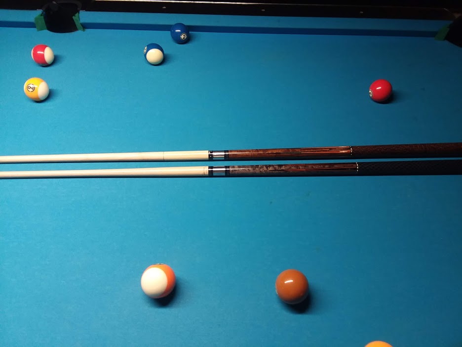 For me both cues have a real similar type of hit & feel. But both cues are around 20 oz each in weight. And over my years of playing I have gradually learned to prefer lighter weight cues now. Like around 18.5 oz.