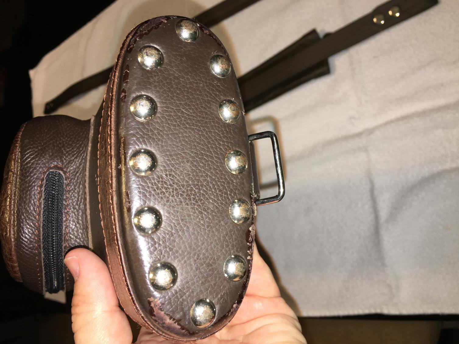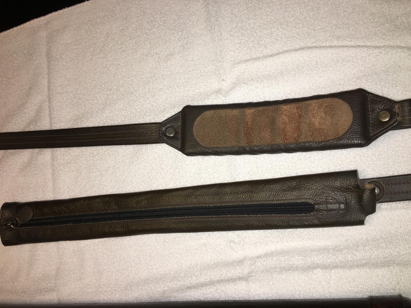 Whitten Case Brown Ostrich 2 x 4 in great condition. It has two carry straps. One with nice comfy cushion and the other carry strap with jump handle pocket custom made by Joe Whitten. The case has the large pocket that zips all the way around with a smaller pocket at the top that also zips all the way around. This case cost $980 new with at least a year waiting list. Asking $650 or make a reasonable offer.