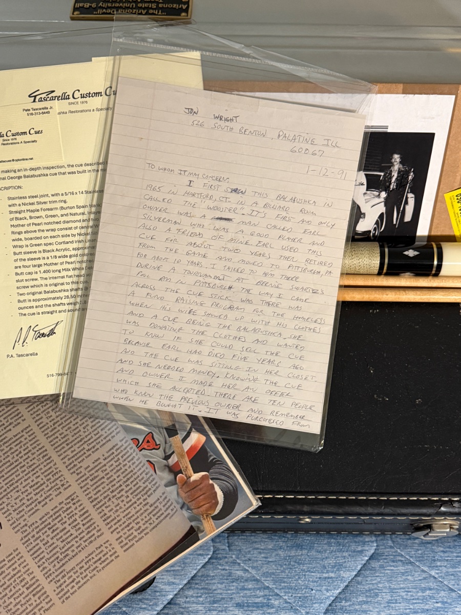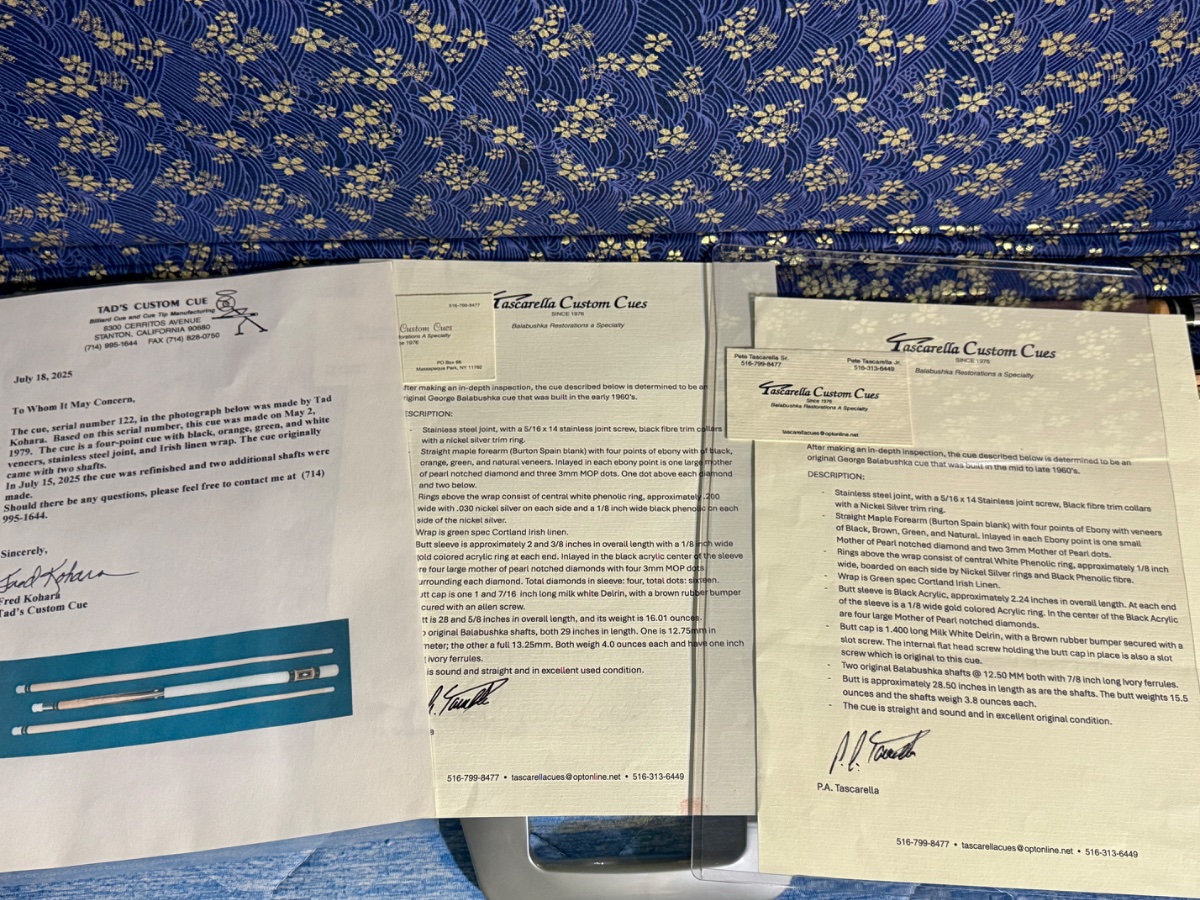 My old playing cue I had for 20+ years. I started playing again after a few years off and that cue was worth a few thousand dollars. There were things that have changed in pool in that time. Carbon fiber shafts, adjustable weight, cue extensions. So I went with newer gear.