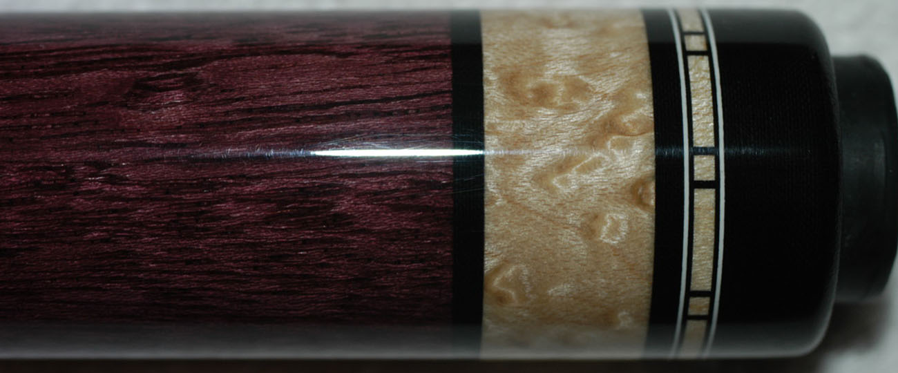 I received this cue new from Andy a few months back and have hit less than 50 balls with it. So, it has been chalked but is most definitely in new condition and I guarantee you'll agree with me if you purchase it. Really, besides the chalk on the tip you wouldn't be able to discern this from a new cue. There is a jump joint of course and the cue weighs 18.0 ounces. I'm not a big cue connoisseur (yet), but this cue is really so beautiful in its simplicity. You really have to see it in real life to fully appreciate it, as i'm sure is true of all of Andy's cues.
