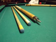2 shafts (original w/aegis ferrule and silver ring) second shaft made 10 yrs later by Rocky (micarta ferrule w/o ring) BOTH SHAFTS ARE STRAIGHT