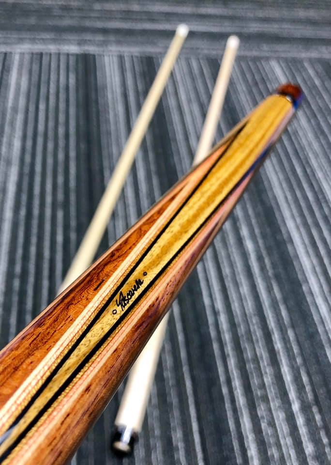 Here’s a pretty nice wrapless Tascarella cue with some nice Woods
