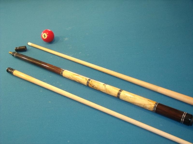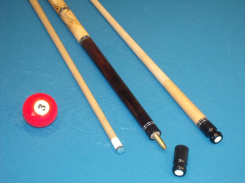 This cue is made from Madagascar ebony with a segmented spalted Tamarind handle.