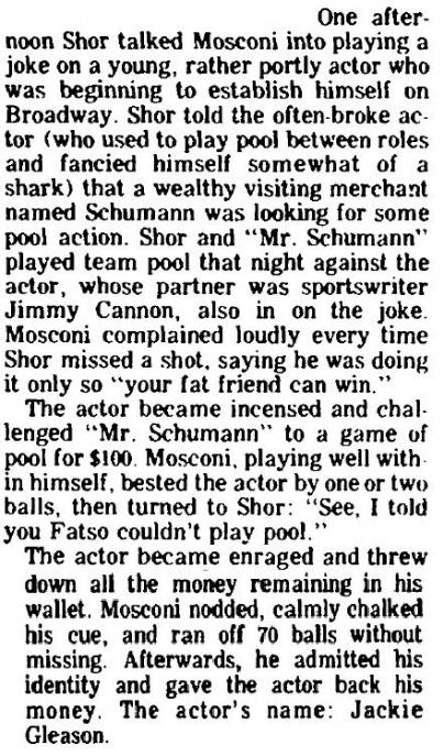 Mosconi did most of shooting for Newman.
