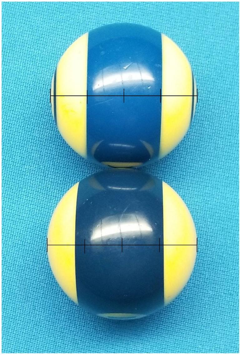 If you can find an “older” Centennial striped ball, the edges of the stripe are at 1/4, or A & C. Newer centennials and Aramith balls are close, but the old Centennials are dead on. As someone else stated, place the stripe where you are looking straight at it. Do this and you’ll burn in the A & C visuals in a VERY short time.