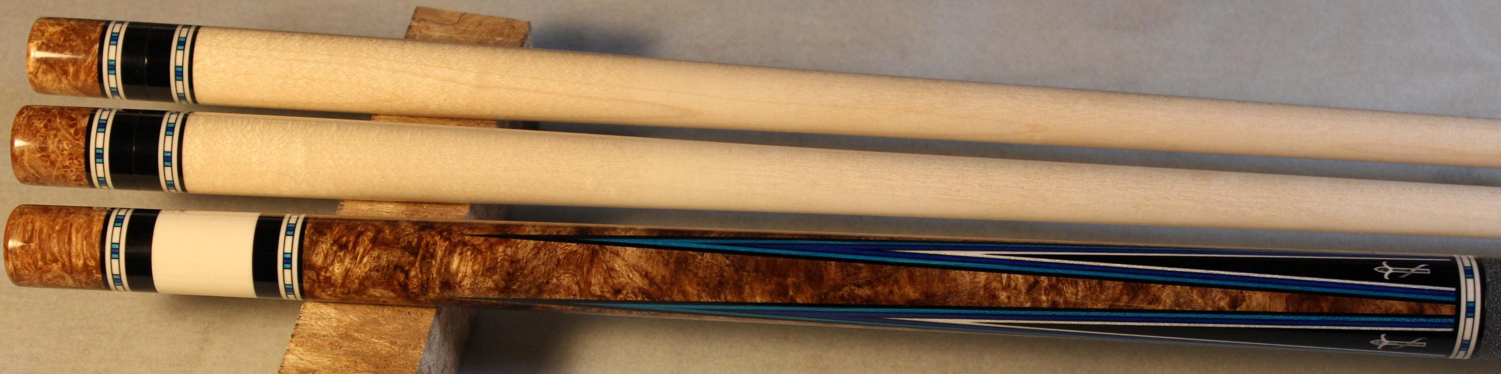 Same veneers I had Bob use back in ‘16. Blue & purple just go together so well just like red & black does. Aside being an extraordinarily great cue maker, Bob is just a prince among men in his demeanor too.