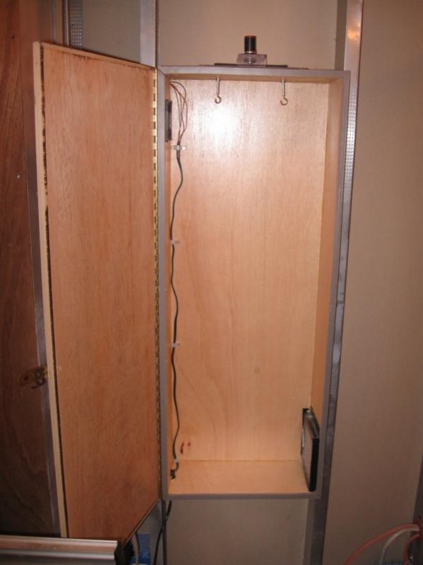 Not wanting to make you feel badly but actually, this is a pretty bad design for more than one reason. 1. You can't spray in it without the fear of either blowing up your house or a slow death from nerve system damage or emphysema and 2., You want a smooth, fairly heavy coats of finish put on the cue so that there is a smooth and unblemished film when finished and dry as possibly can be attained. For this reason the cues need to revolved horizontally and spun rather slowly ( 30-150 rpm) until a little bit dry so that the finish will not run. Hanging and spinning vertically may make applying finish consistent but does not help at all from running and getting curtains in the finish as it will be ever more thicker the farther you get from the joint. You just can't get around Newton's law about gravity.