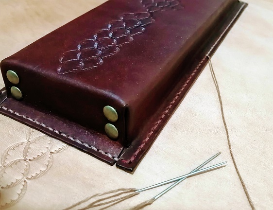 OK. Now that I look at it with my glasses I can see the hand stitching. Awesome work. I did leather work a lot back in the 70's. Mostly floral carving on my custom holsters and belts and also carved live oak blanks for a local saddle maker. I miss working with leather. You do nice work. Keep us posted.
