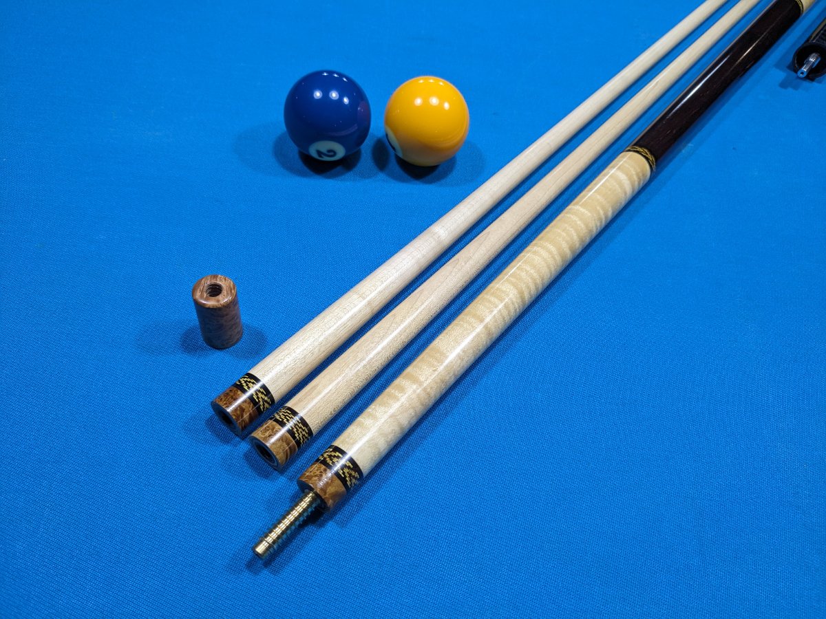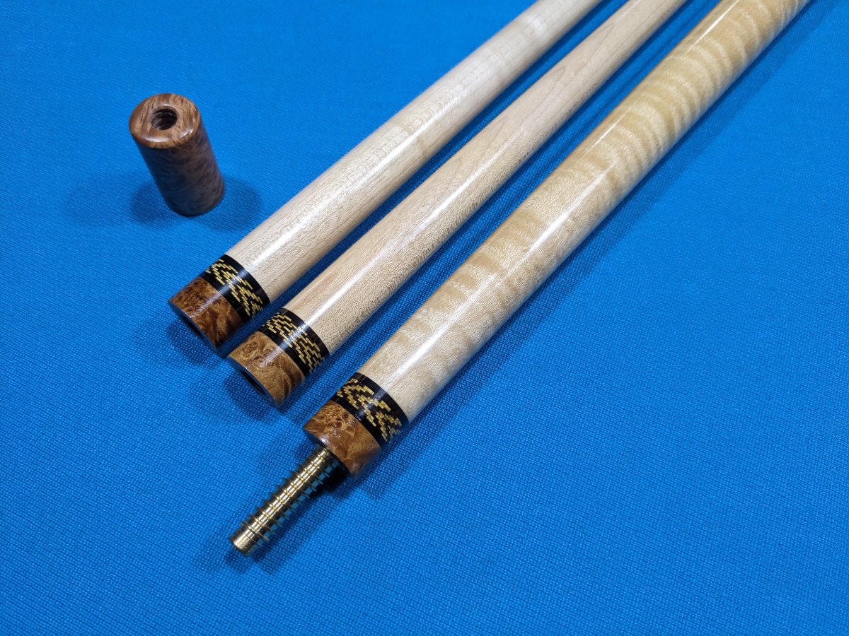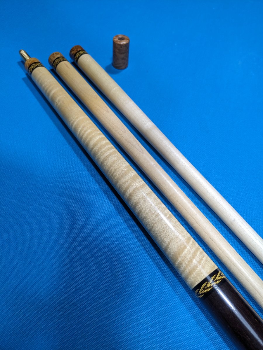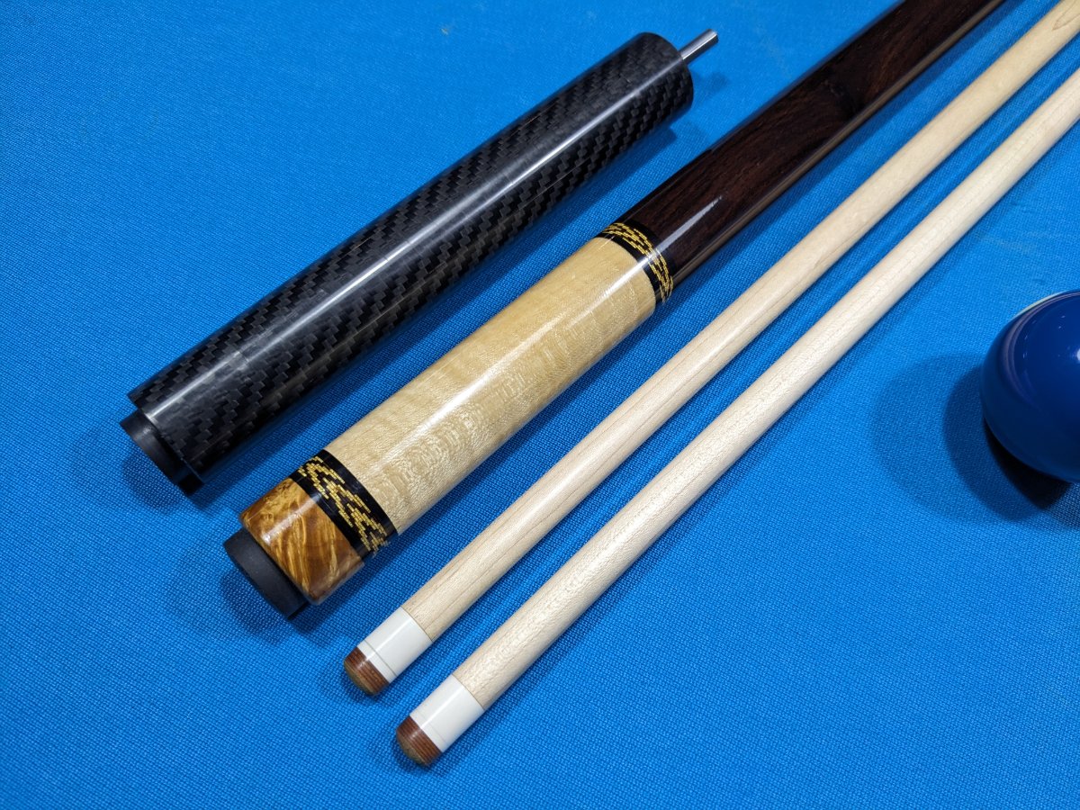 Built on a full length core where two woods spliced together. Pau Rosa at the front and and hard maple at the bottom. So no A-joint here like every cue I build.