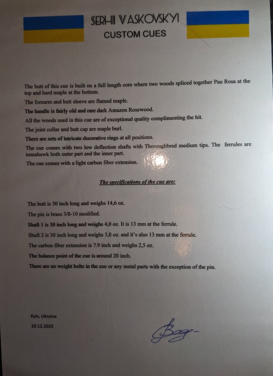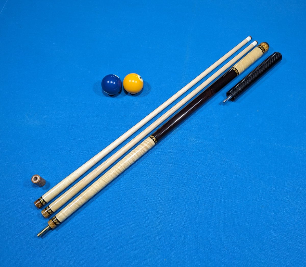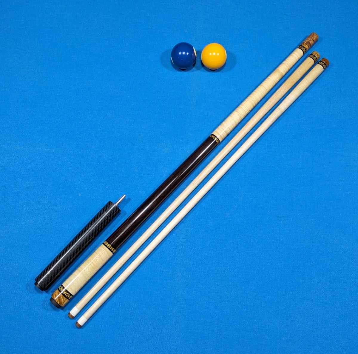 Built on a full length core where two woods spliced together. Pau Rosa at the front and and hard maple at the bottom. So no A-joint here like every cue I build.