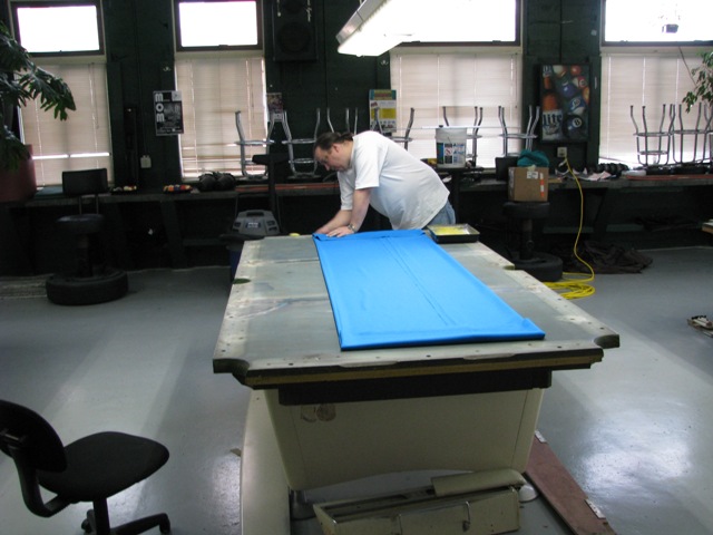 The gluing of the cloth on tables that are manufactured for staples, a year ago when I heard of this method....I thought to myself, no way will I ever do something like that on a Brunswick table.