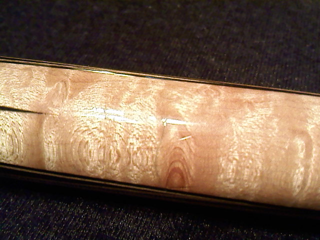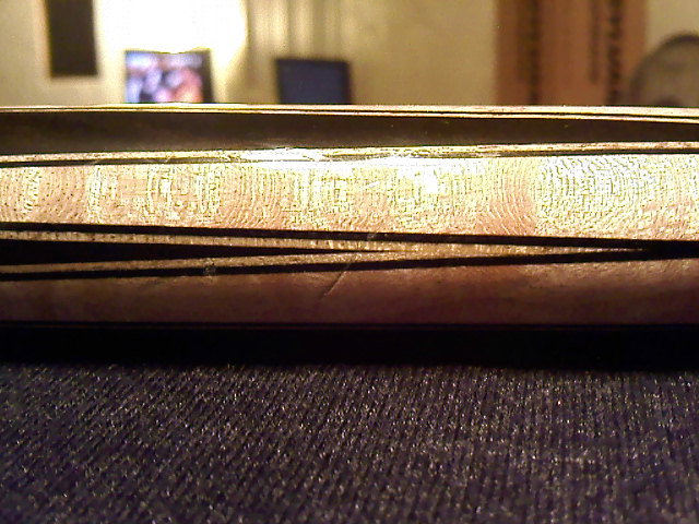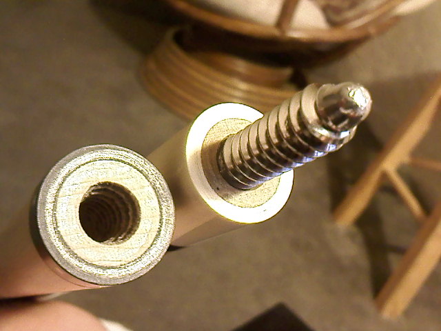 On the inside of the butt cap the ebony is relay thin and has some cracks from shrinking, then brown phenolic and weight bolt epoxied in, like a south west system. I don't think that you can change out the bold with out a lathe.