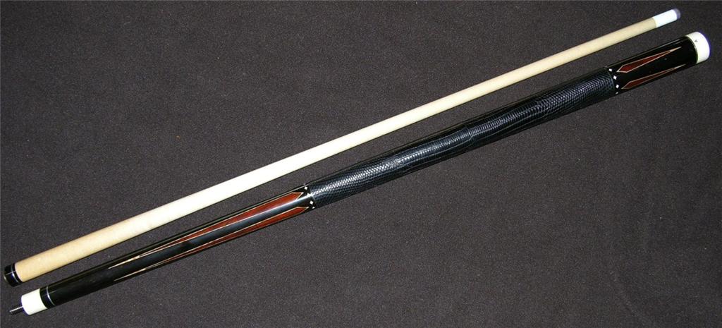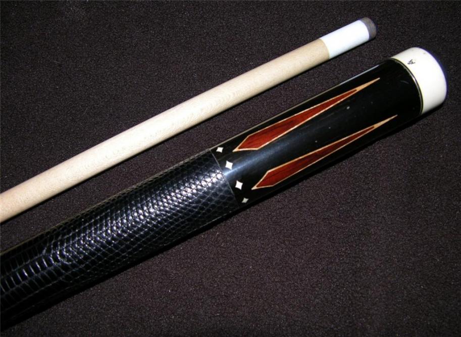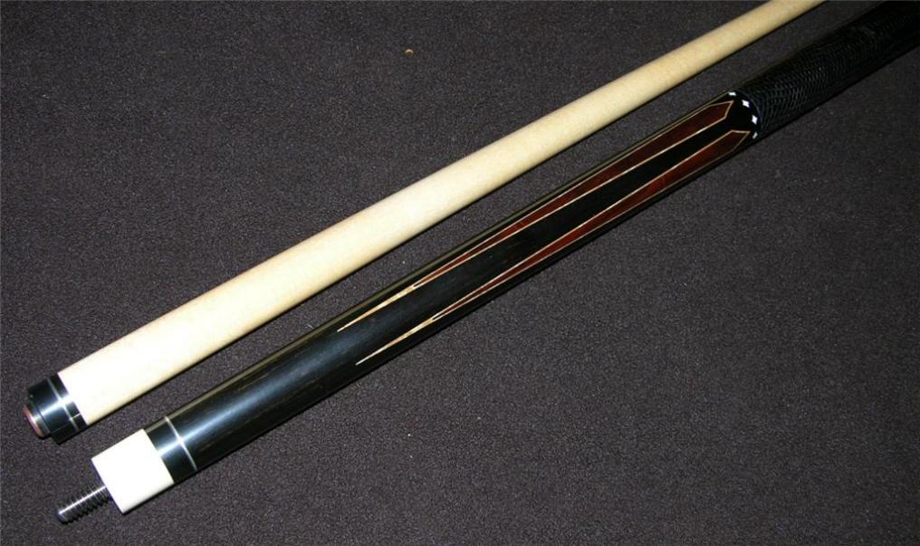 In 2 weeks I will have another McDaniel available. Ebony cue with cocobolo spears 5 forward in the forearm, 5 reverse in butt handle. Comes with a micarta joint with phenolic insert just as described above. Ivory diamond ring inlays at C and D positions. Will have 2 shafts that are great old shaft wood. Cue has an very nice hit as well. Currently being completely refinished by Dan Dishaw, it will be just like new then. I believe the cue dates back to the mid 90's.