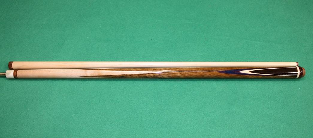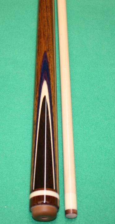 For sale is a new cue built by both Reuben and Bryan Fisher. Shedua and Maple sneaky with 2 wendge butterflies with white, purple, blue, and purple veneers. Moose Joints and Moose Hoppe ring. Brown phenolic and brass ring work.