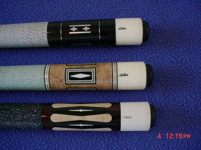 Duane Remick AzB Silver Member Silver Member Oct 4, 2010 #1 ***TOP CUE IN THE PICS" Great condition , from 1990 , or Older finiish is very good condition Cue is an Excellent playing cue!!! Original Non Logo Schon shaft with Micarta ferrule 12.9 @ 4.3 ounces butt is 14.9 ounces- Aluminum weight Bolt $$$800.00 shipped/Insd conus NO TRADES