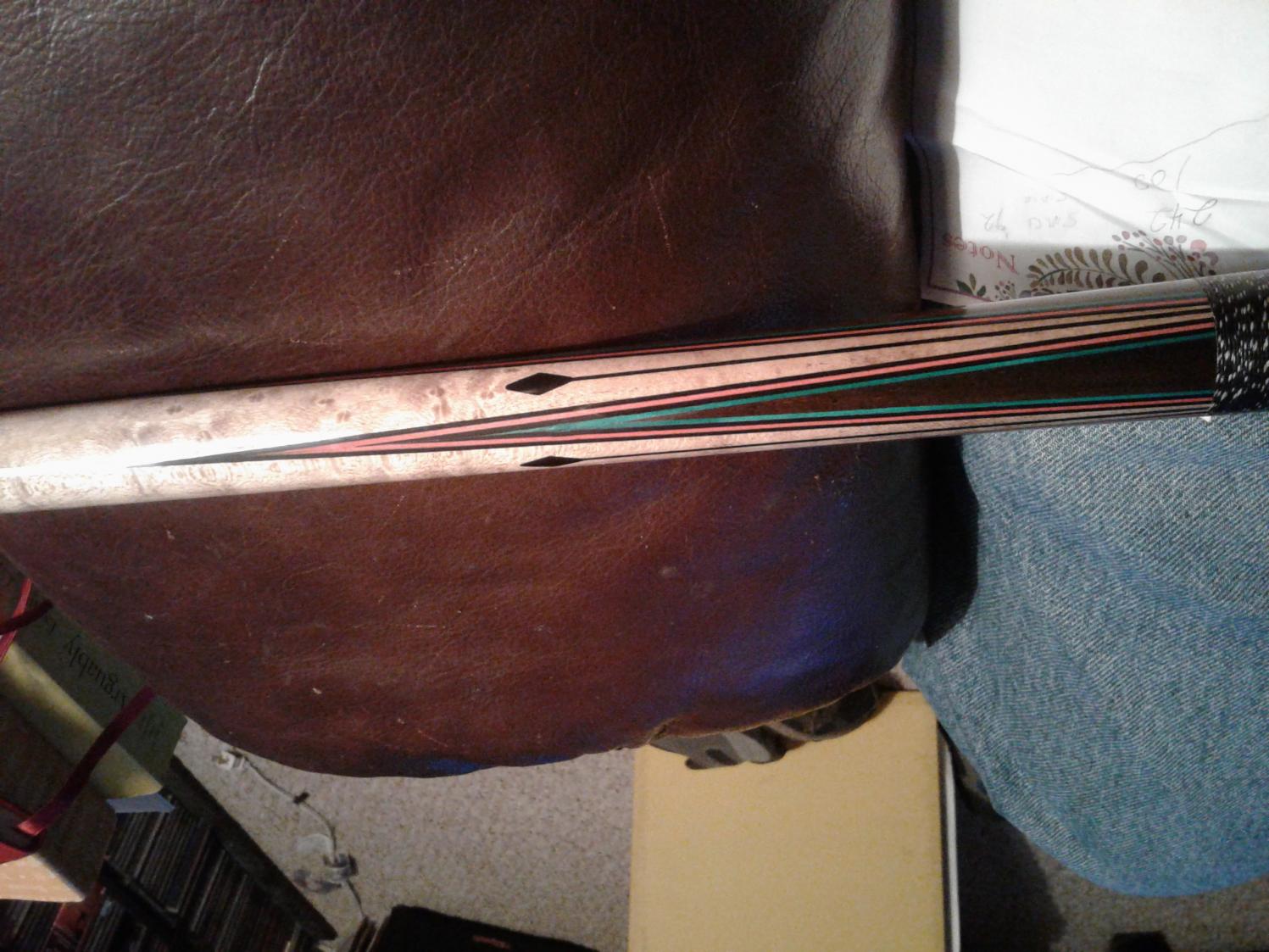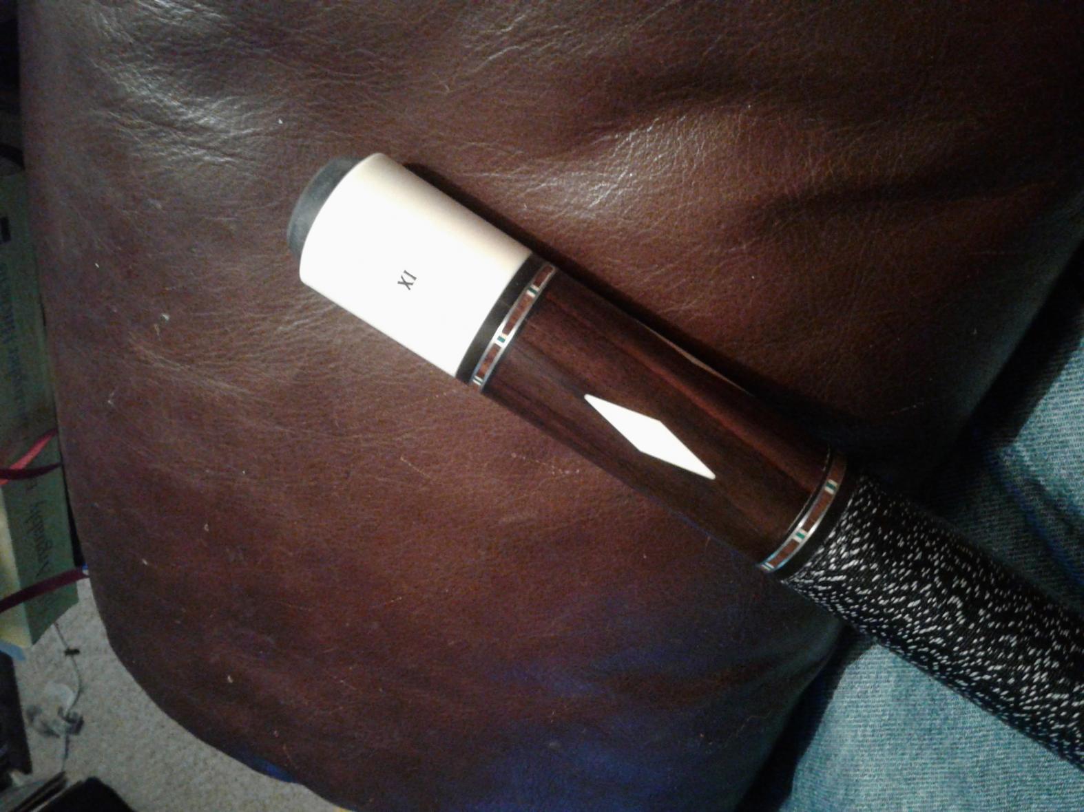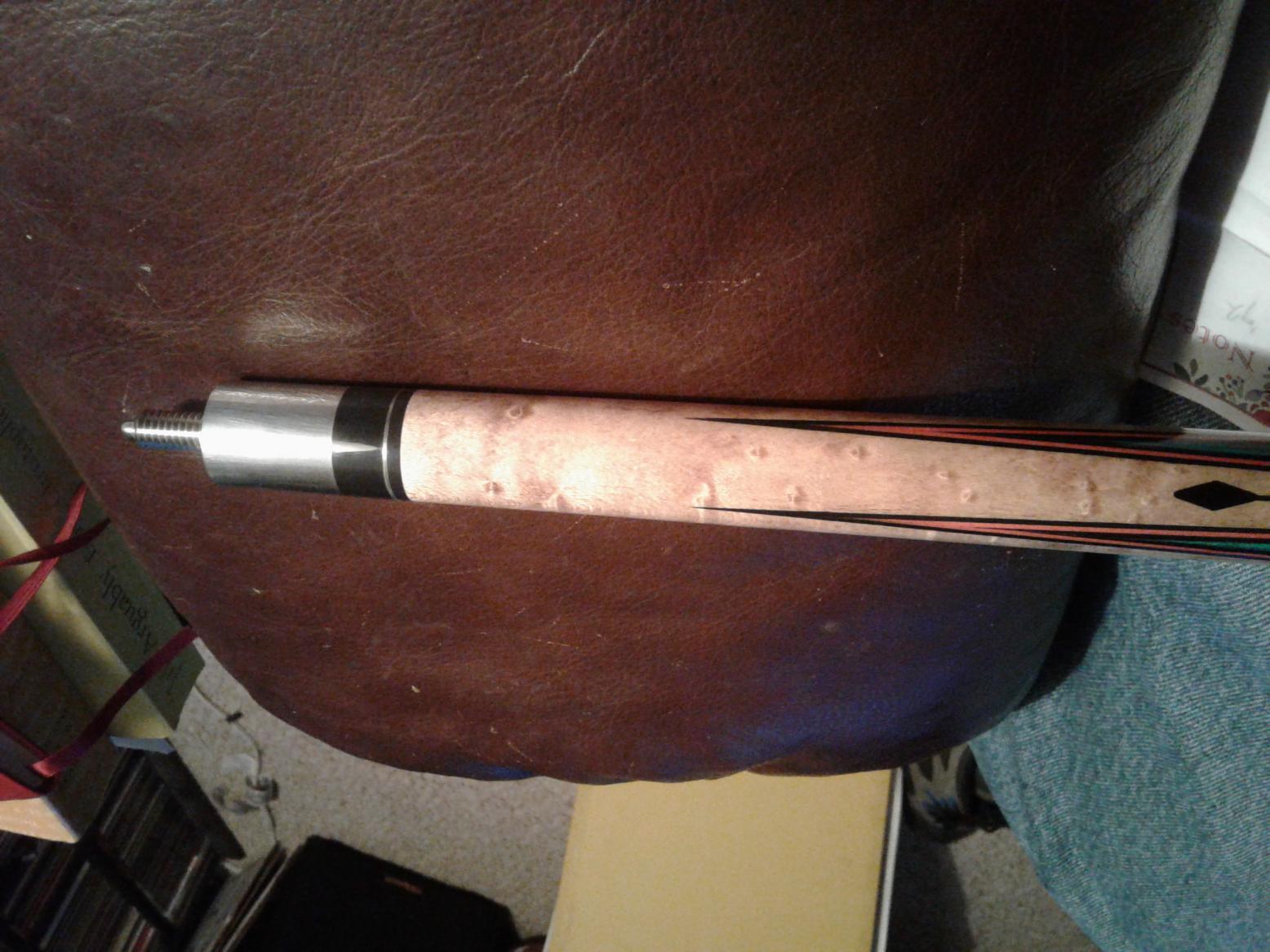 Purchased on eBay from a seller who said he knew Red and purchased this cue from him. Beautiful cue and vintage, but I would have thought a heavily reputed player would have had a more prestigious cue. One curious feature is what seem like man made errors--points not all same height, a misaligned dark diamond at the end of a dark thin veneer line.