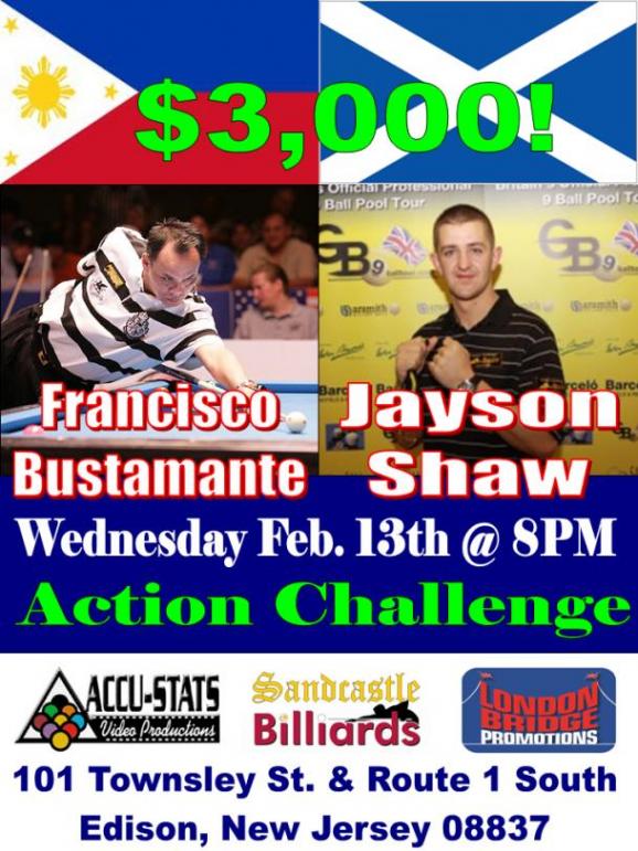 Accu-Stats and London Bridge Promotions present Francisco Bustamante squaring off against Jayson Shaw.