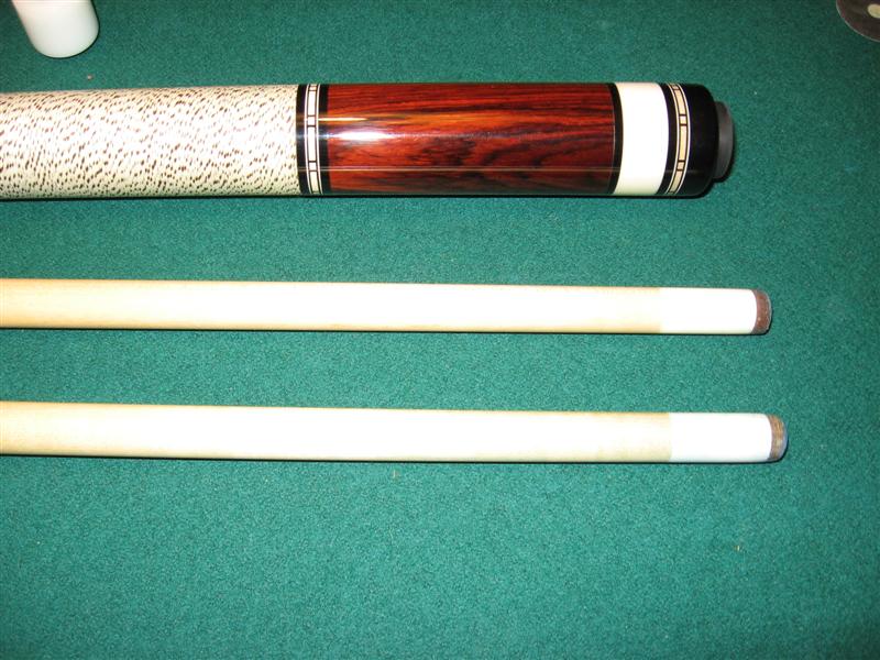 This cues' is a stunning looker and plays great like Andy's cues are known for. Cost to order from Andy would be approx $1300. My friend the seller would like $950 + $15 for shipping to the lower 48 states - pls no silly lowball offers. Cue and shafts are in my possession and ready to ship. Will try to post more close-up pics when I can figure out how to use my new camera.