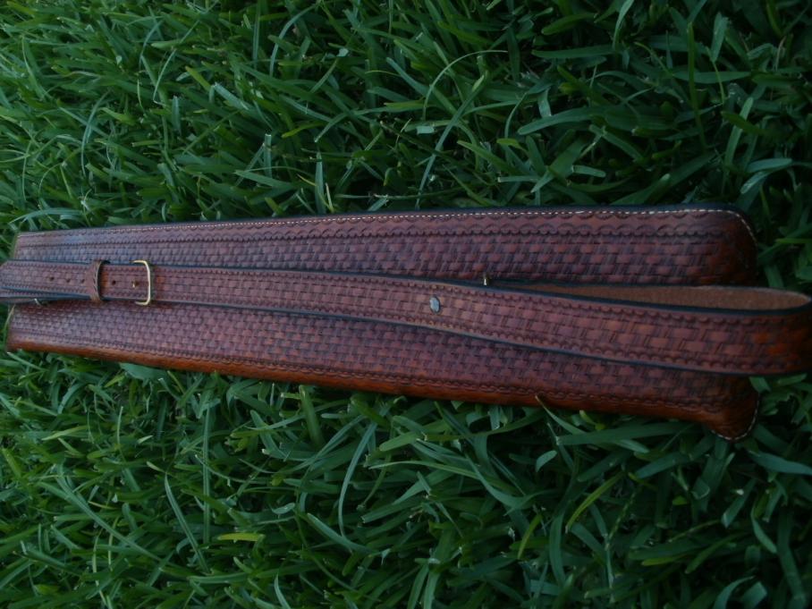 I have for sale this nice case. It is made with 100% real tooling leather, handmade, and colored with the antique technique. The front of the case it is covered with a one of a kind design, the back it is full covered by an elegant basket wave stamp.It also has an adjustable and stamped shoulder strap.