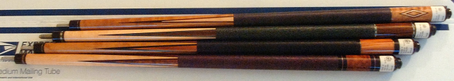 M72B, February, 2007 Cue of the Month, “Double Diamond”, 4 maple points , Black/brown speck linen wrap, brass rings, Cocobolo diamonds in Butt cap, 19 oz, 13 mm shaft. Retail Price $449, Sell $300