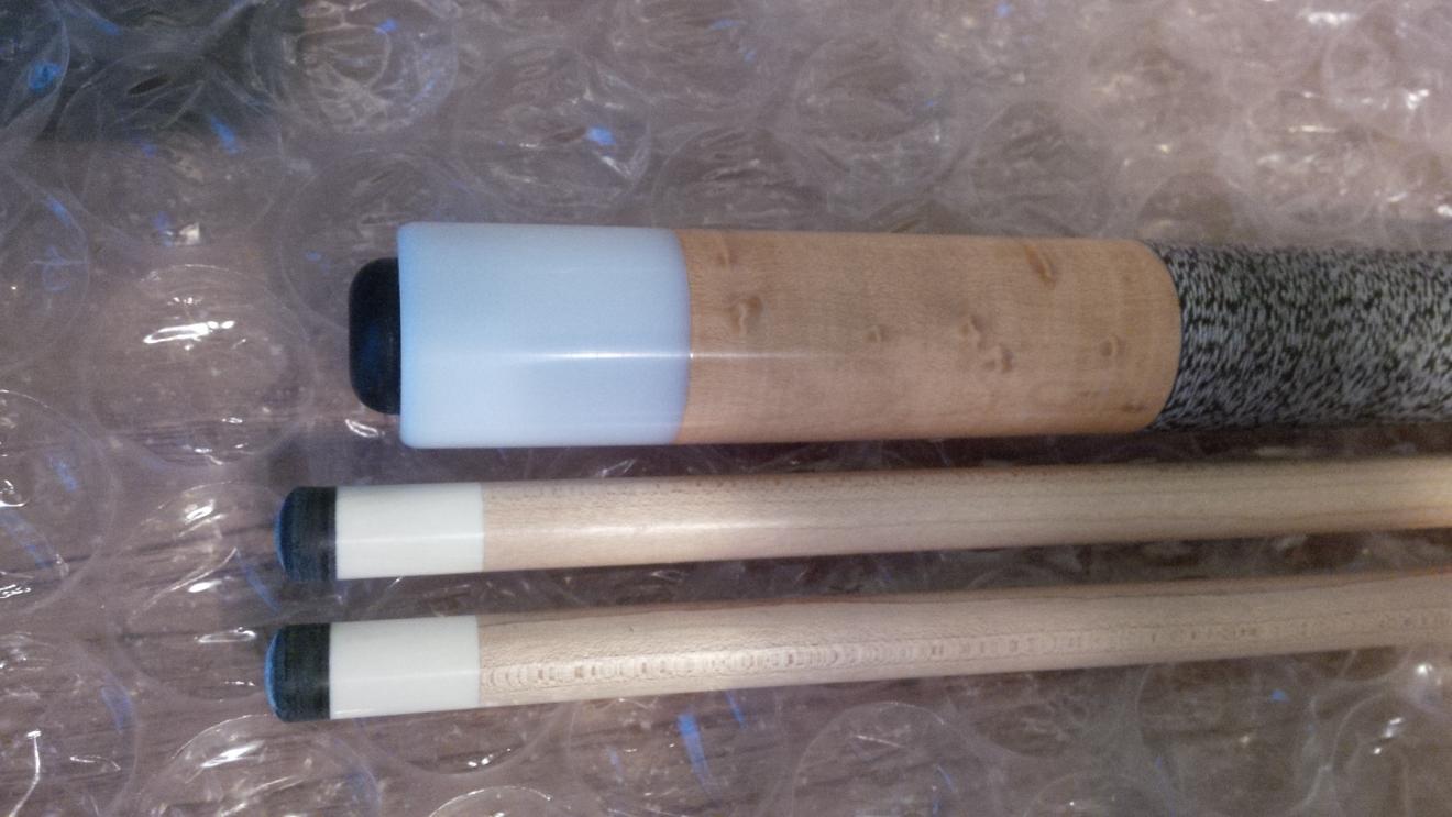 Bender INFO 58” 19.5 oz 2 shafts – ¾ inch ivory ferrules – 13mm Solid BEM Forearm, BEM Buttsleve, White Delerin buttcap white w/ black speckle linen wrap 5/16x14 SS pin w/ maple block rings 500 obo