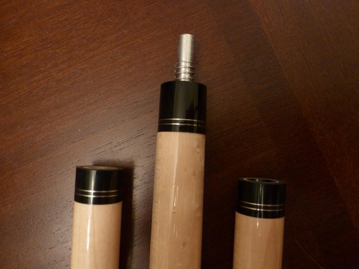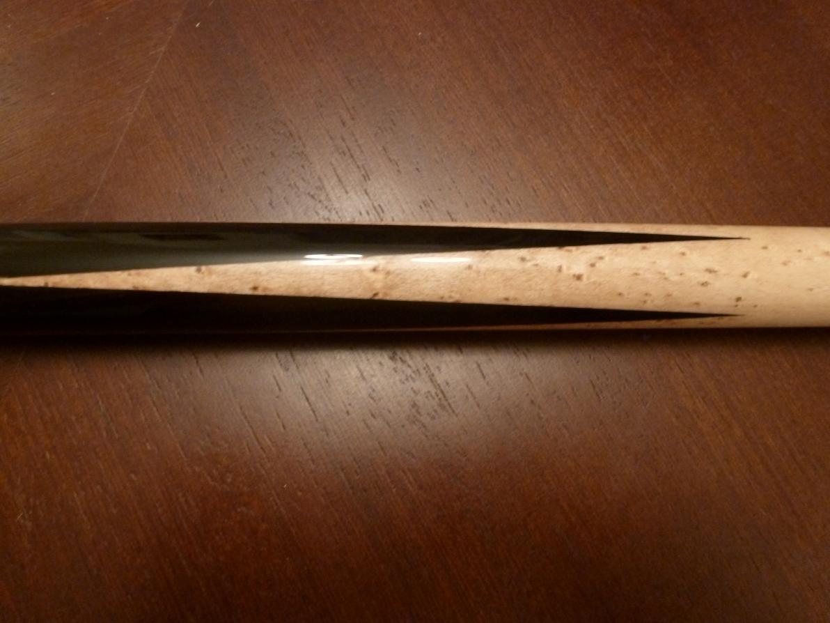 First is a Lomax ebony full splice into BEM forearm. It has a white butterfly and double silver ring ringwork at the joint and butt cap. Cue is in very good condition and rolls straight. Comes with 2 shafts. I don't have a my scale or calipers at the moment, but can get specs ASAP if needed. One shaft has a tiny taper roll and the other rolls straight. Butt has one little nick in the butt cap.