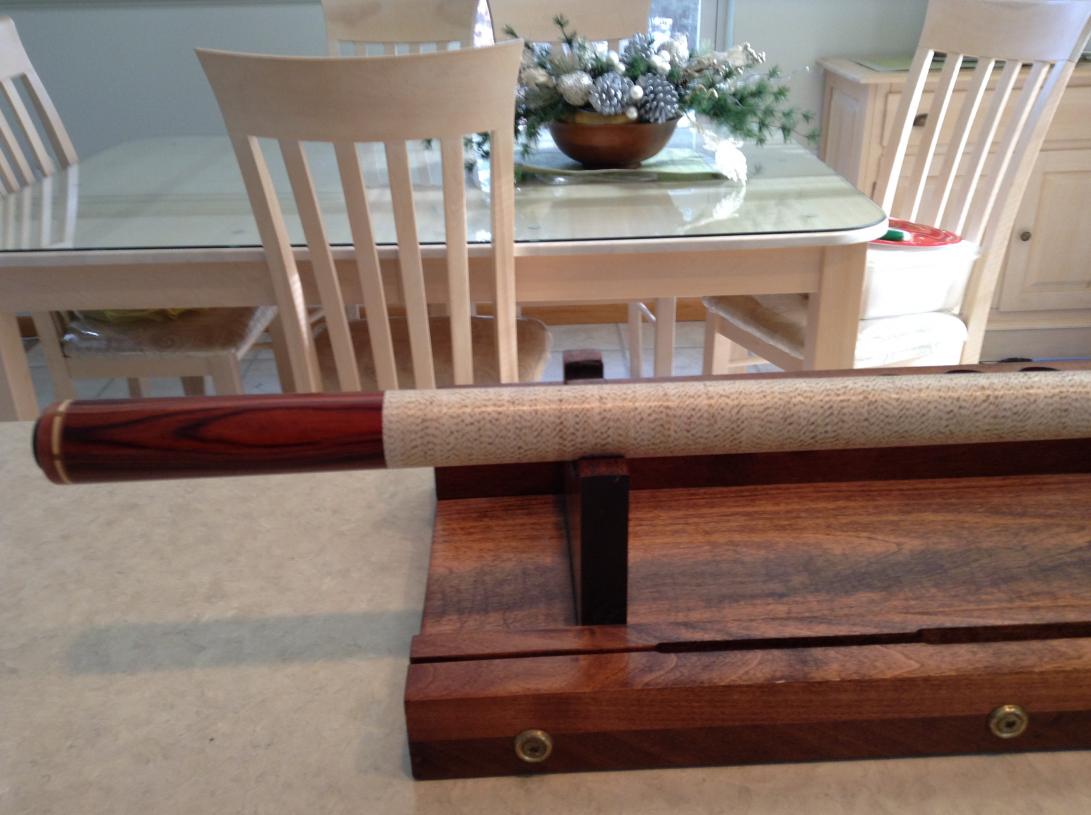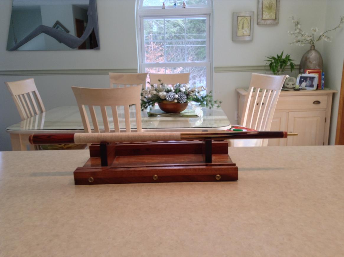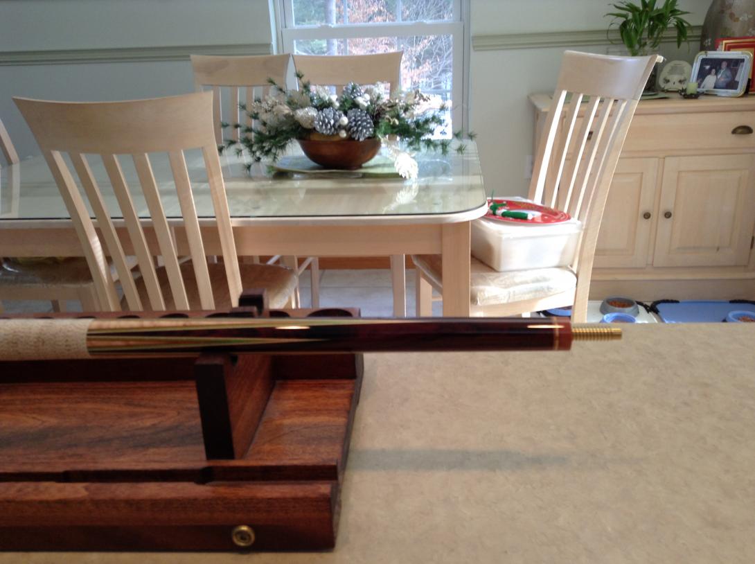 !!!!!!!! CUE IS SOLD !!!!!!!!For sale or possible trade, brand new Manzino six point cue with triple veneers . Cocobolo forearm/butt, birds eye maple points. Original Courtland Linen wrap, two 13MM shafts with ivory ferrules. We can work out the details on trade offers. Please PM or email cfugarino@yahoo.com with all offers. Would like to get a Schick or Tascarella cue with ivory flat face 3/8 x10 joint. The veneer colors are orange, green, and natural. Manzino specs: