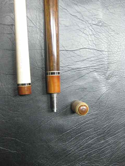This cue rolls straight as an arrow and plays great (note: I am a firm believer that it is the indian and not the arrow that makes the player, i.e., this cue will not turn you into a champion on its own merits!) and has only one small crack in the finish that you can not see in the pictures (though too small to see, I want full disclosure about everything I sell).