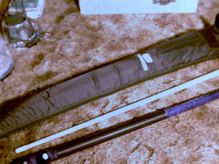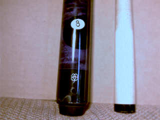 McDermott E-H1 cue with the 8 ball on it. Just under 19 oz, 12 mm shaft, 58 1/2" long, black Irish linen wrap. A little of the clear coat is peeling off the butt and the joint. Just a tiny wobble when rolled. Includes a McDermott padded nylon soft case. Asking $100 shipped.