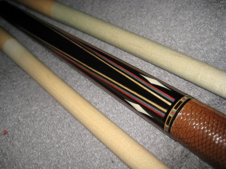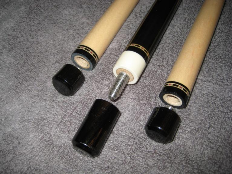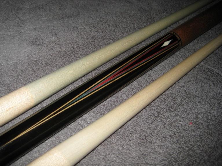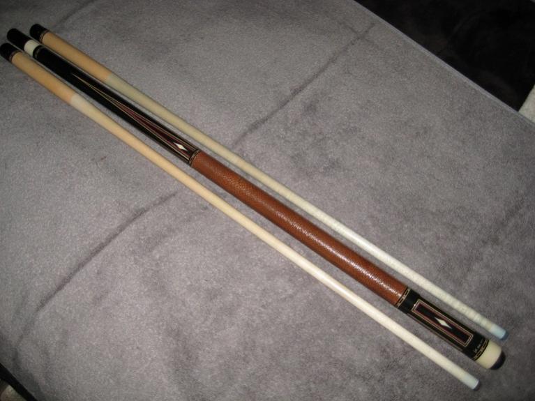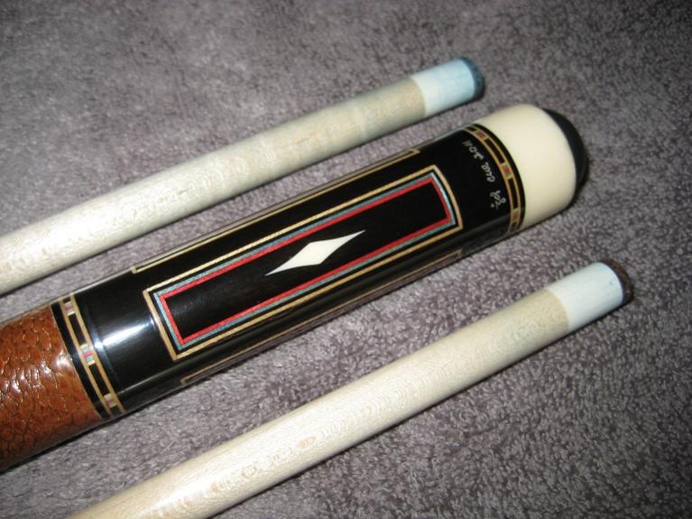 This JD Cue is one I have had since 2011. It is without a doubt one of the best players I have owned which is why I kept it for this long.. Still dead straight! I figure if the butt hasn't moved by now it probably won't. Butt is 14.5oz. Shafts are 3.8oz/13mm and 3.6oz/12.85mm. Joint is 3/8-10 Comes with joint protectors. Cue has a very nice feeling leather wrap with a great seam. Has seen light play but no nicks or bruises.