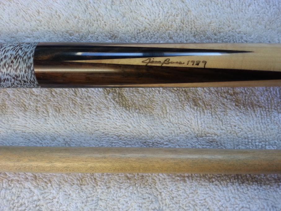I have a 1989 signed Jim Buss for sale in Mint condition.This cue has been completely refinished and had a new irish linen wrapped installed by Jim Buss. It is a six pointer with three high and three low points that appear to be a light cocobolo or rosewood. On the butt sleeve is a repeat of the wood of the forearm with Ebony rings, the white is not ivory, not sure of material. The weight is 18.5. I have this priced to sell at 700 shipped! For fast response text 562-316-6600. Thanks for looking! Jef