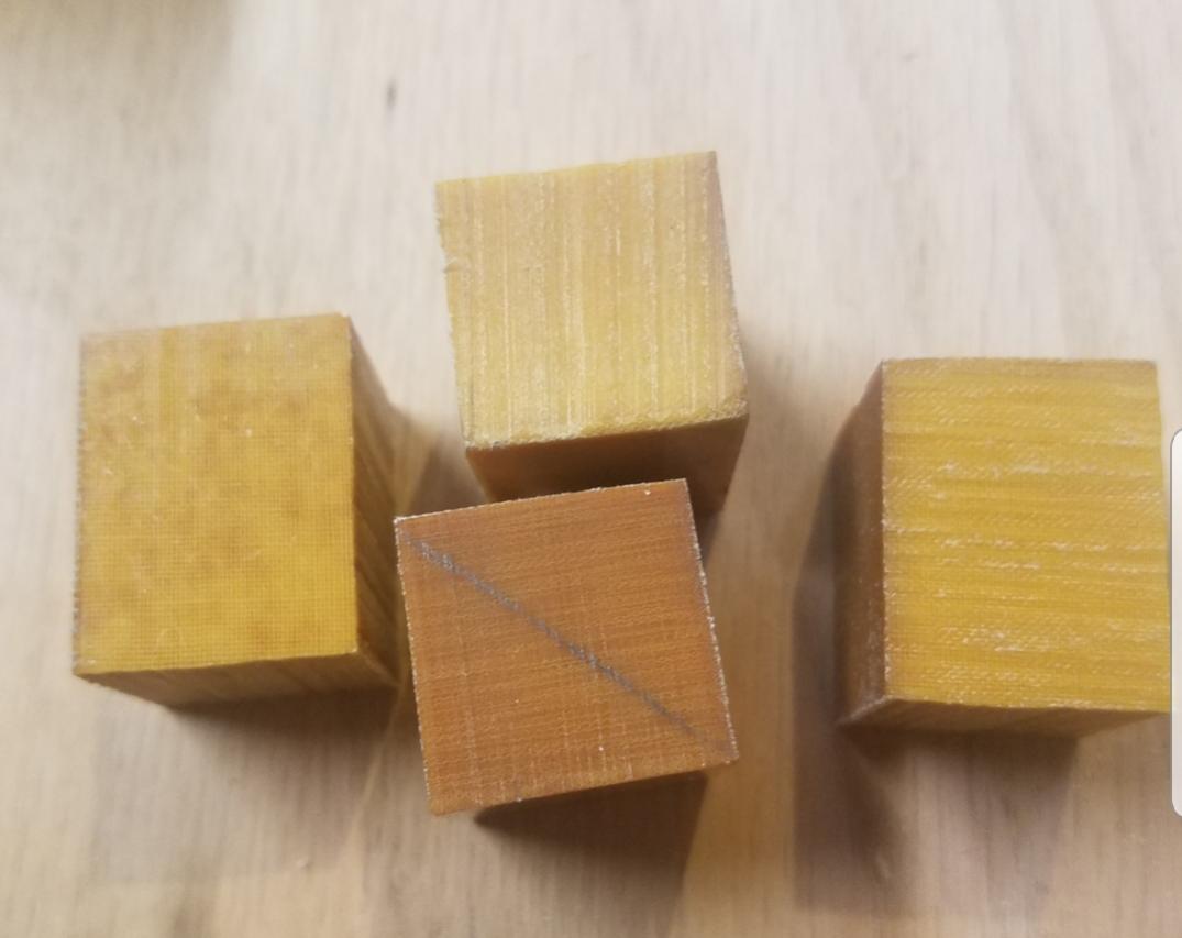 I have 4 old Westinghouse linen based yellow micarta ferrule blanks. This is not the old yellow micarta that turns yellow with age. These actually turn organge-ish with age. These make excellent playing ferrules and I actually prefer these over the old yellow micarta. These measure .740-.760" square and .950" to just under an inch long.