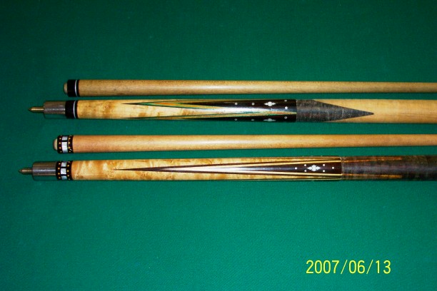 I recently had Mr. Koo, aka Flyingsnail, do a full restoration on this original 70's Adam 'Ritz' cue. I believe it's model AH-10. He did a great job and even managed to get ahold of some incredible white with green spec Irish linen direct from Tad's personal stock. Due to wonderful timing on behalf of the universe I'm in need of some cash so I'm putting it up for sale. The cue comes with the original 13mm shaft (brass 5/16x18 thread) that Kenny also reconditioned.