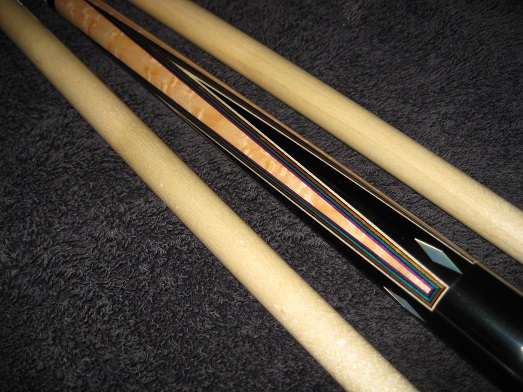 Selling this gorgeous wrapless Pete Tonkin cue that is in excellent condition. No issues. I have played with this cue quite a bit and it has a terrific feel and balance. Tonkin cues are very hard to find on the secondary market. Ebony Tonkin cues with bridged points are very rare.This cue is a gem.