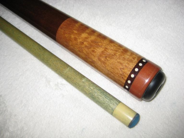 Offering for sale this very cool R Pettit custom sneaky.. All white dots are ivory. Butt is 15.1oz.. 3/8-10 pin.. Shaft is 3.7oz/12.53mm.. Straight.. These cues are difficult to find in any condition and they have a reputation for being among the best playing cues available. This one plays outstanding!