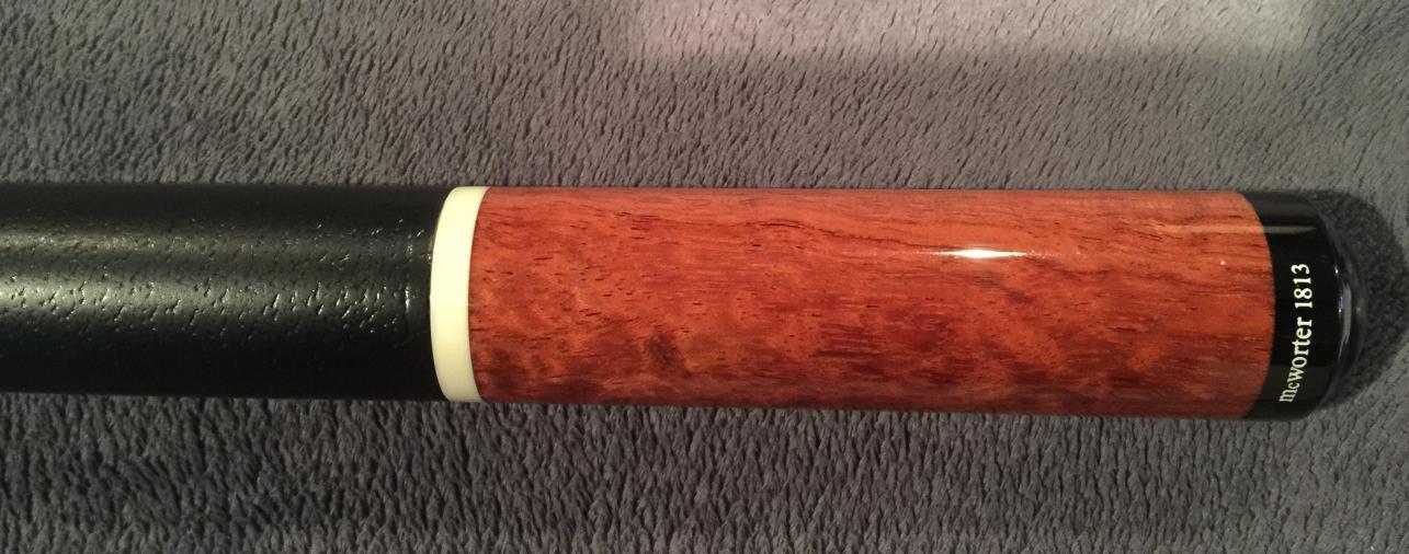 For Sale- McWorter very rare Pomelle Bubinga forearm/butt. 2 shafts. Ivory ferrules. All straight. Ivory rings above and below wrap. Wrap is original pigskin from Jerry. Joint protectors. Number 1813.