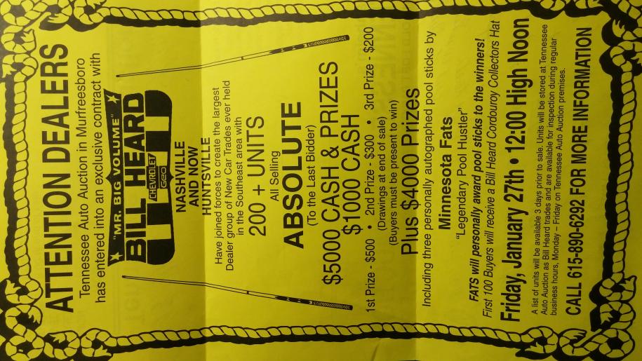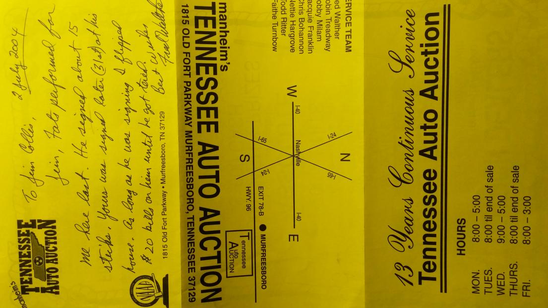The authenticity of this is without question; I rec'd this cue as a gift from a family who was involved in setting up his appearance at this Tenn auction. I am including a couple of images to do with that event plus the link just below that will help further establish the provenance.