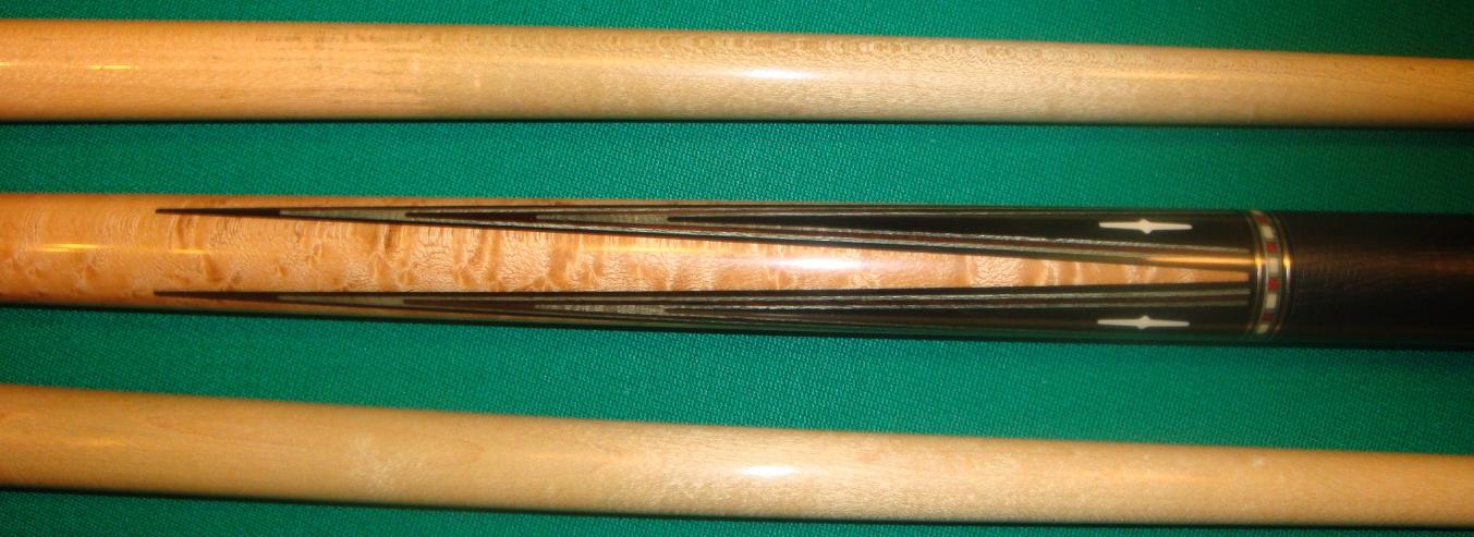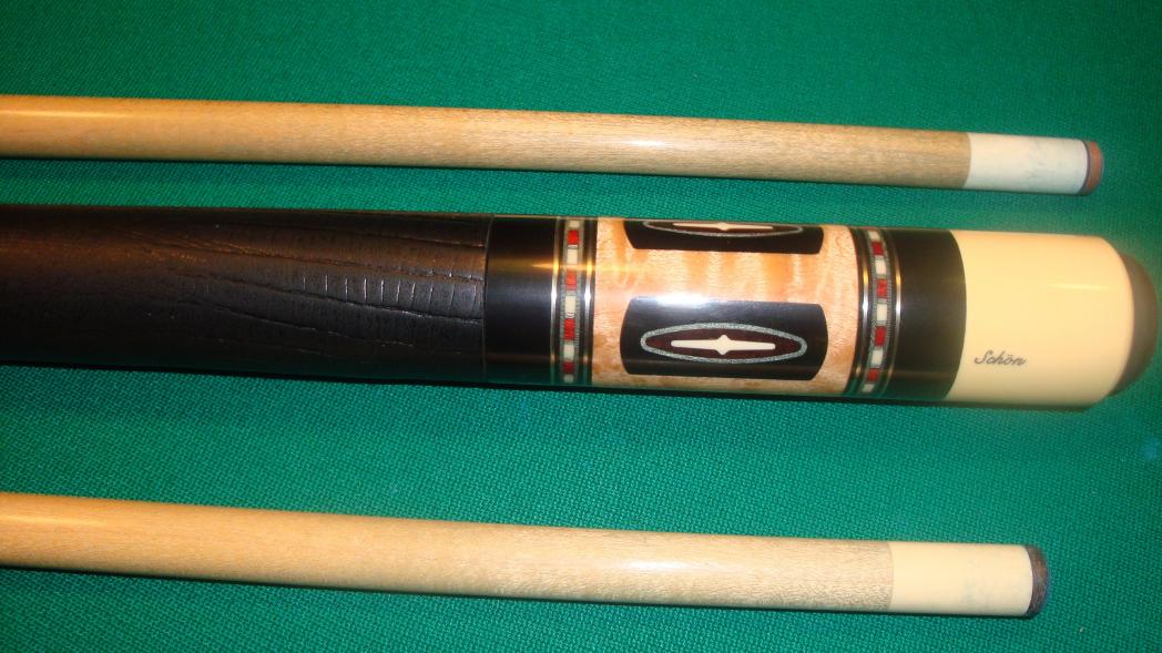 schon SR-11 cue here with three shafts....one says shcon 13 and one is a tiger laminate shaft and third is plain prior to 93...butt weighs in at just over 14 ounces and each shaft is just over 4 ounces...