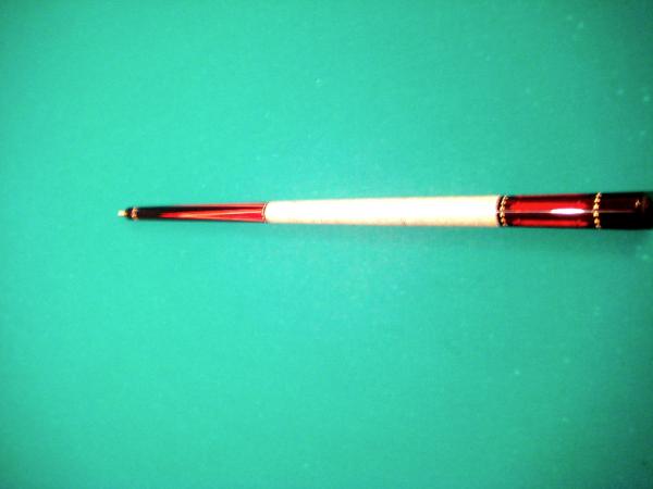 I'm looking to trade this Phillipi to try another cue. The cue has no signature but has been verified. I think the signature when taken off when it was refinished. Who ever did the refinish did an outstanding job. The forearm and butt are ebony with paduk points and inlays. Veneers are maple and pink ivory. The butt weighs 15.7, 3.7 shaft, 3.55 shaft. Everything is straight together and apart. The cue is in 95% condition with a little blueing on the shafts. Let me know if there is any interest.