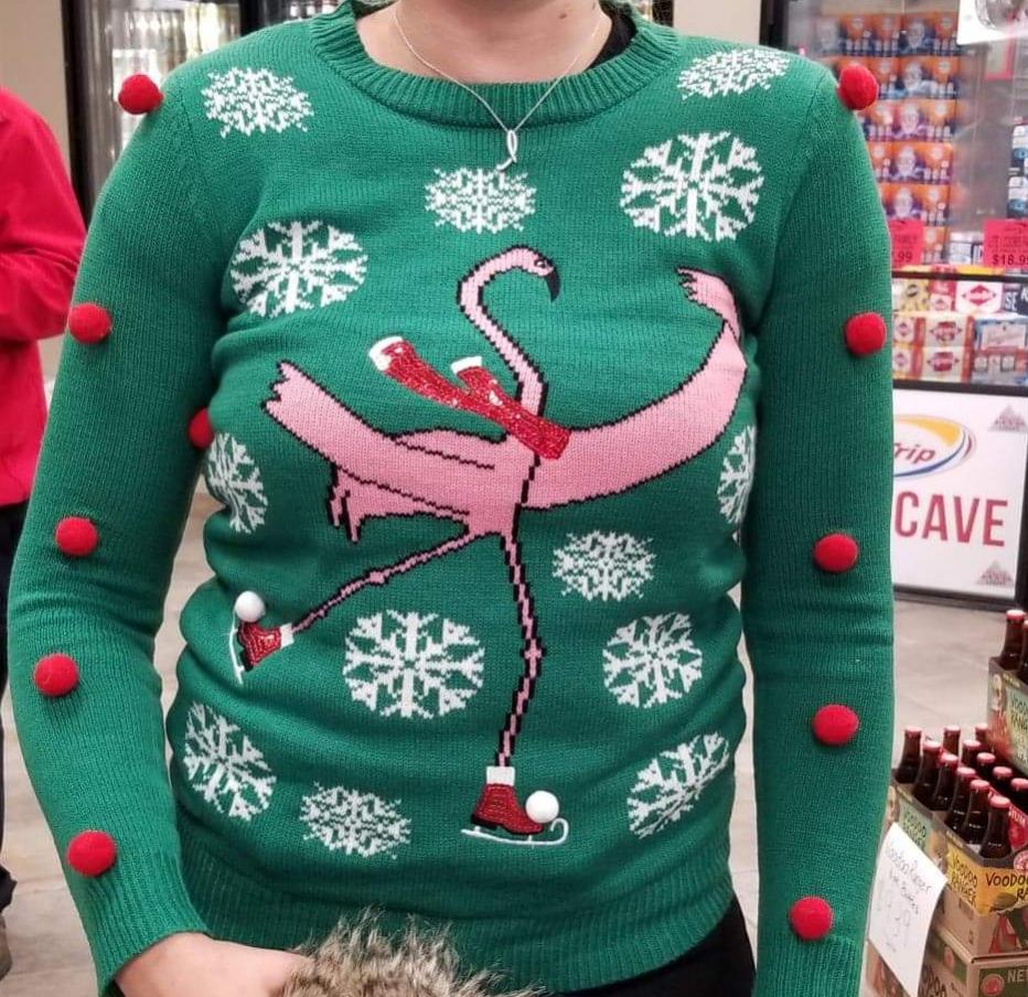 So a friend and I are looking at a picture of about 40 pink flamingos. A lady walks up to us and says "Wow look at all those penguins". My friend is going to pee her pants when I show her this "penguin" sweater.