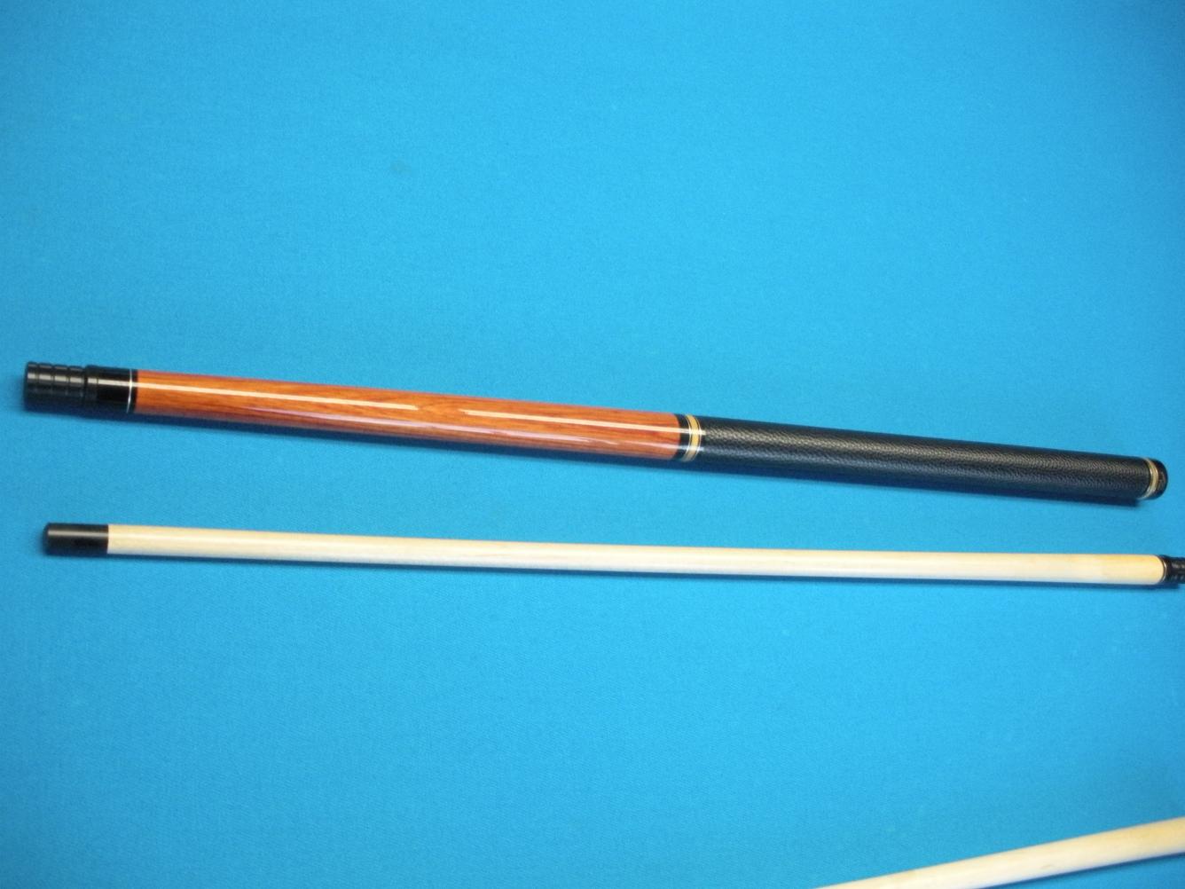This cue is in very nice condition, just usual signs of use. The shaft is straight as an arrow. The butt has a minor lift near the joint when rolled. Has both joint protectors.