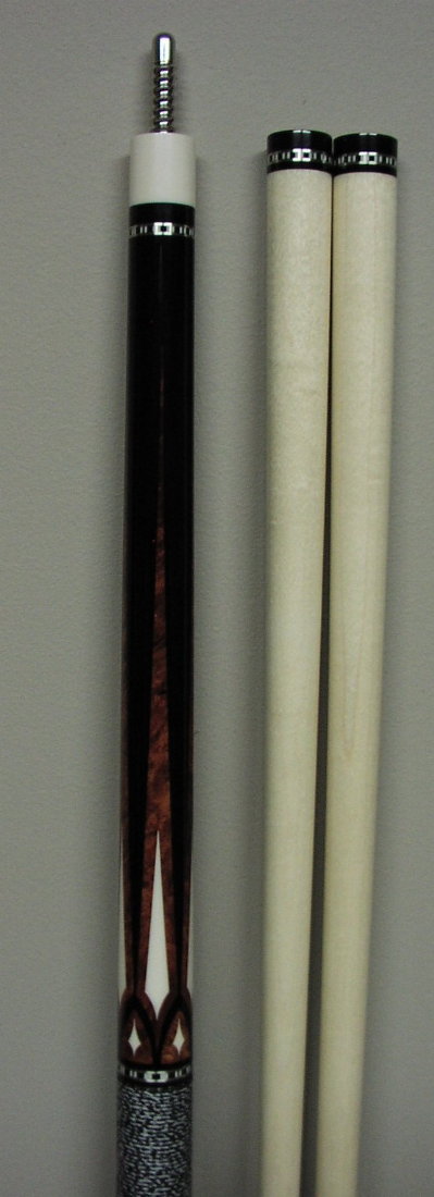 Ebony with amboyna points (Gabe's has snakewood) ivory inlays, joint and ferrules. One of the best hitting cues I have hit in a long time!!