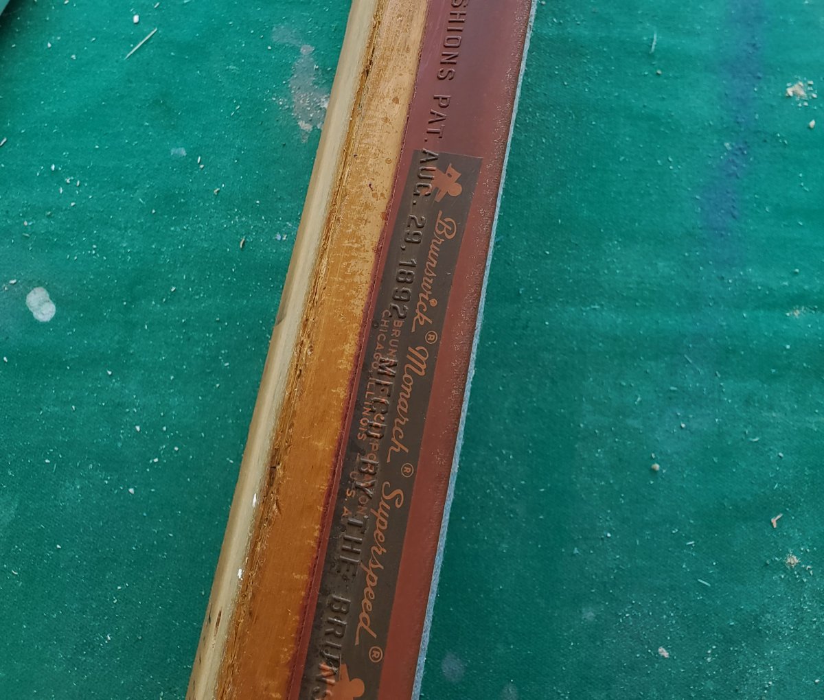 Just brought home GC1 and was prepping for shims and new cloth. This came out of a house but was clearly a commercial table previously. Rubber is not dead. Gave 4.5 rails when tested at purchase and hit dead true. Rubber says Match Monarch cushions. Brunswick Balke Collender
