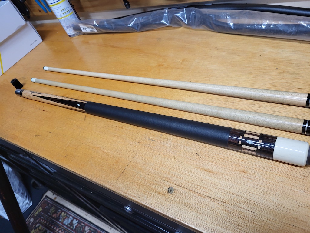 Hey , GB Adam cue. This was probably somebody's league shooter. It has some nicks. Very good hit, super pretty. I added a leather wrap. $450