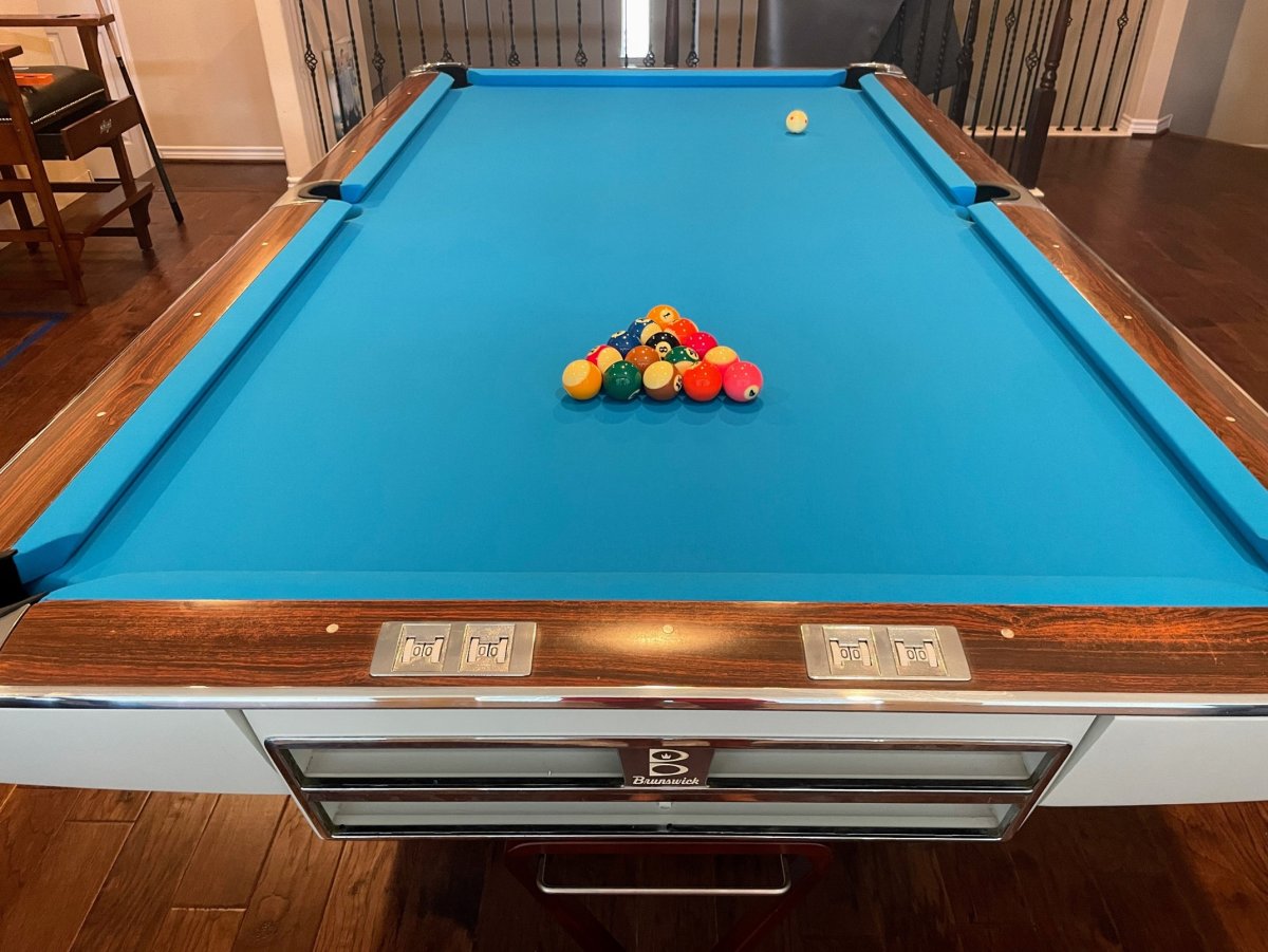 My good fortune was that I wasn't even seriously looking for a table at this point, about 10 years ago. I had just started playing pool about a year earlier, I had the week after Christmas off of work and just happened to be perusing CL ads and came across this 8' GC for $300 that was only a half hour away. I immediately got in my vehicle and drove over there, paid for the table but couldn't pick it up until I had help a couple days later. The owner asked me if I wanted the cue rack and the cues otherwise he was going to throw them away. I said no, I felt I didnt need more junk but I never really looked at the stuff. When we were leaving my wire asked why I didnt want the cue rack, I honestly never even turned my head to look at it, I was in love with the table I had just paid for, she said it looked ,like it went with the table. I called the owner back and told him that I would take the rack and cues if it was still ok, he accepted.