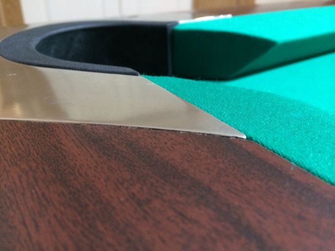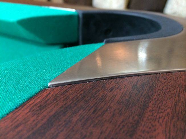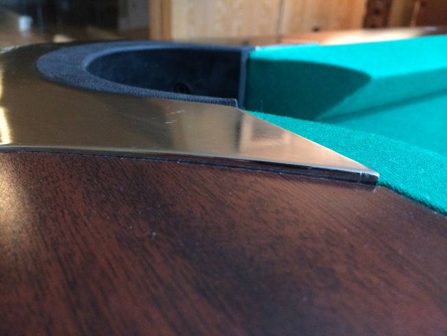 I just had my GC5 reinstalled after having to put it in storage for almost 3 years. I replaced the original rails with tournament rails and I'm pleased with the tighter pockets. What irks me is that (most of) the metal pocket fittings aren't flush with the rails, and are somewhat varied in how much they stick out. I've attached a couple pics. The first two are the same pocket from each side and the second two are a different pocket from each side. This was installed by a reputable company, and I think I should ask for them to come fix this. My question is: what is the fit supposed to be? I think they are supposed to be flush, at least that's what I seem to remember from the old rails 3 years ago.