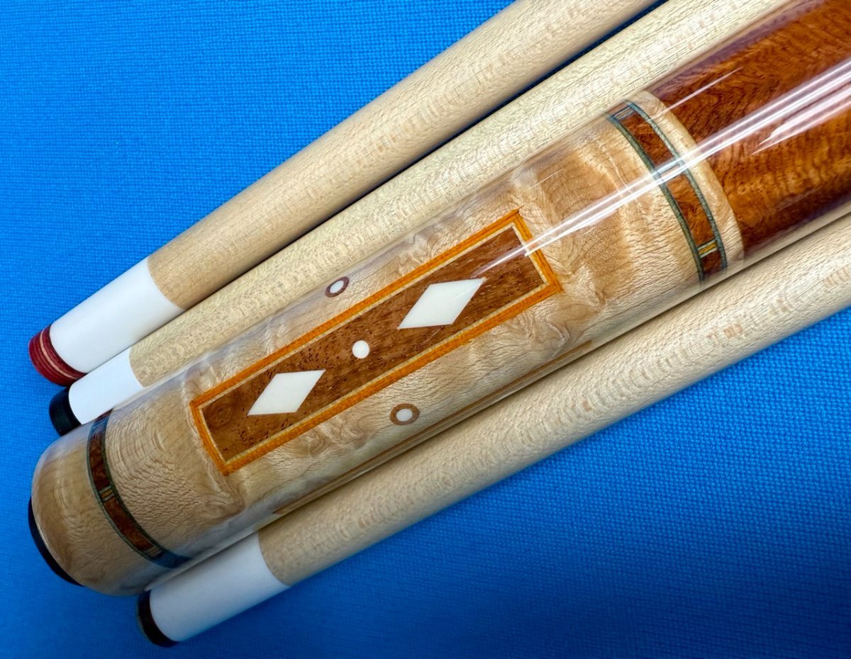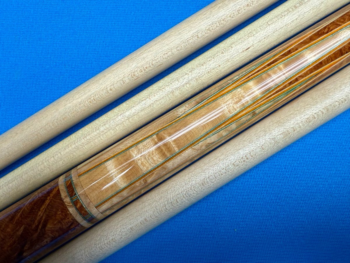 Drop dead gorgeous Amboyna Burl Kenny Murrell with 3 shafts and fancy caps.
