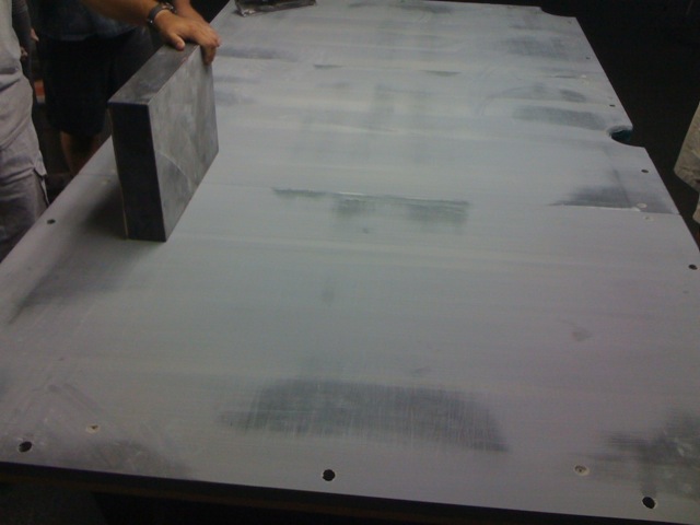 thousanth and is much harder than slate. The process of flattening a table involves the use of